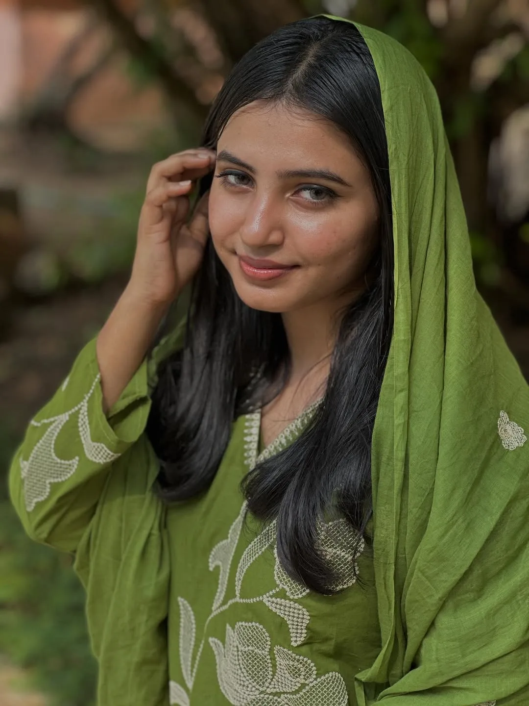 Premium Mul Cotton Green 3-Piece Kurta Set