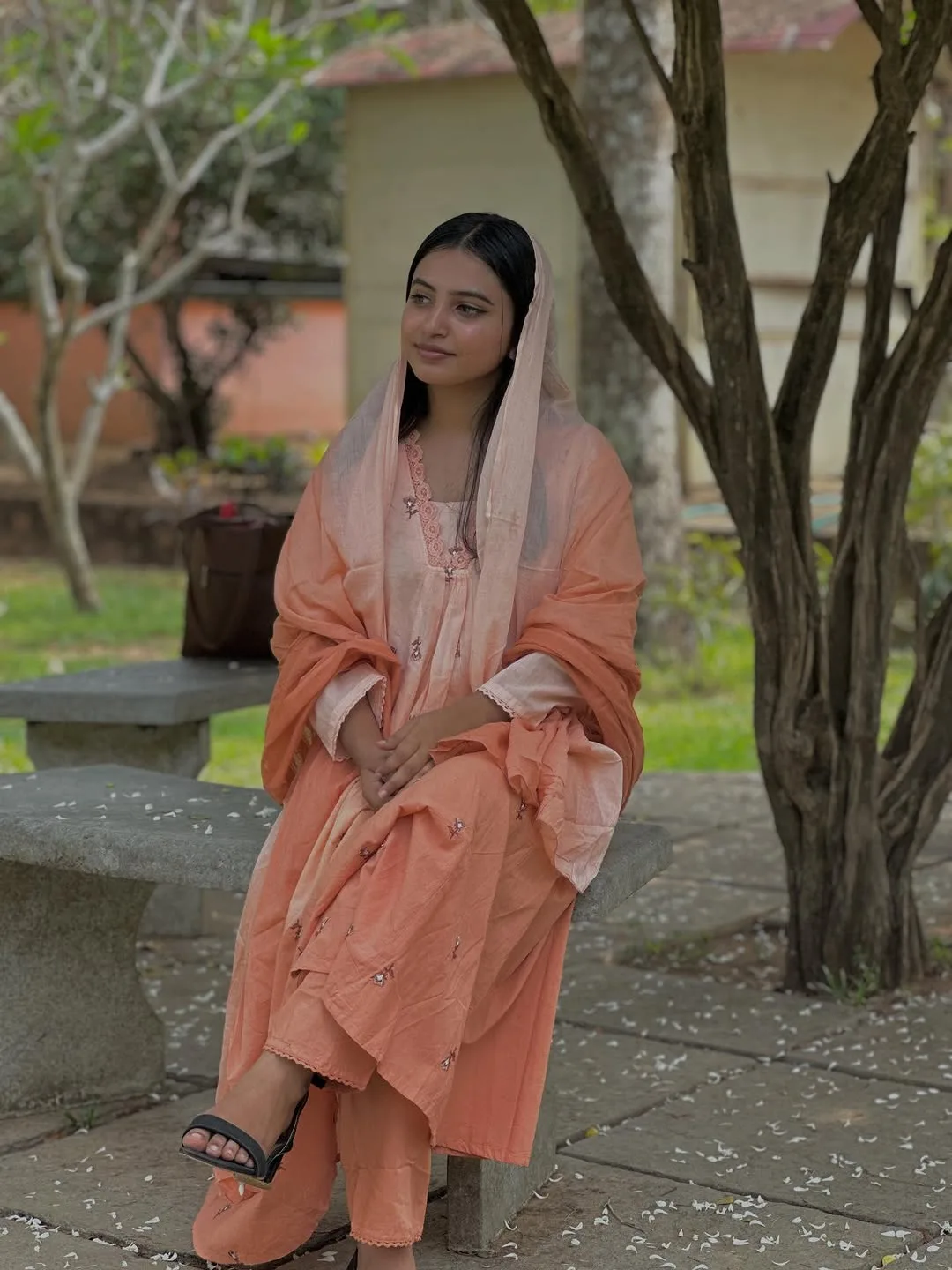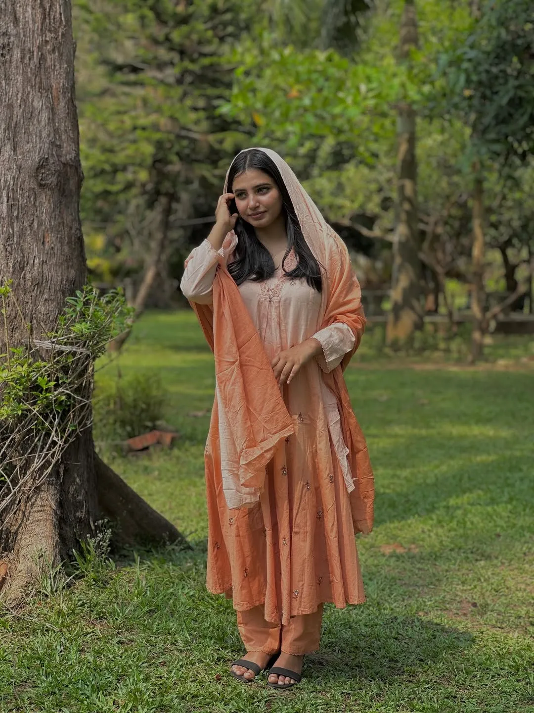 Soft Peach Ombre Cotton Kurta Set with Lace Detailing